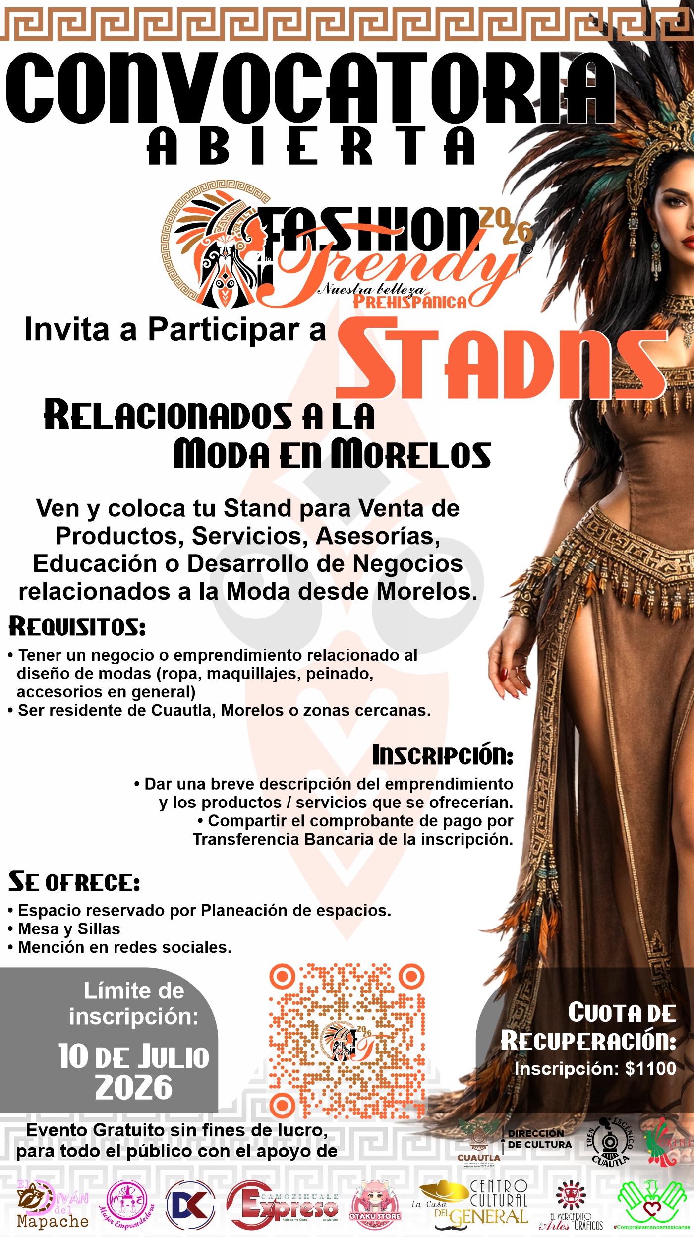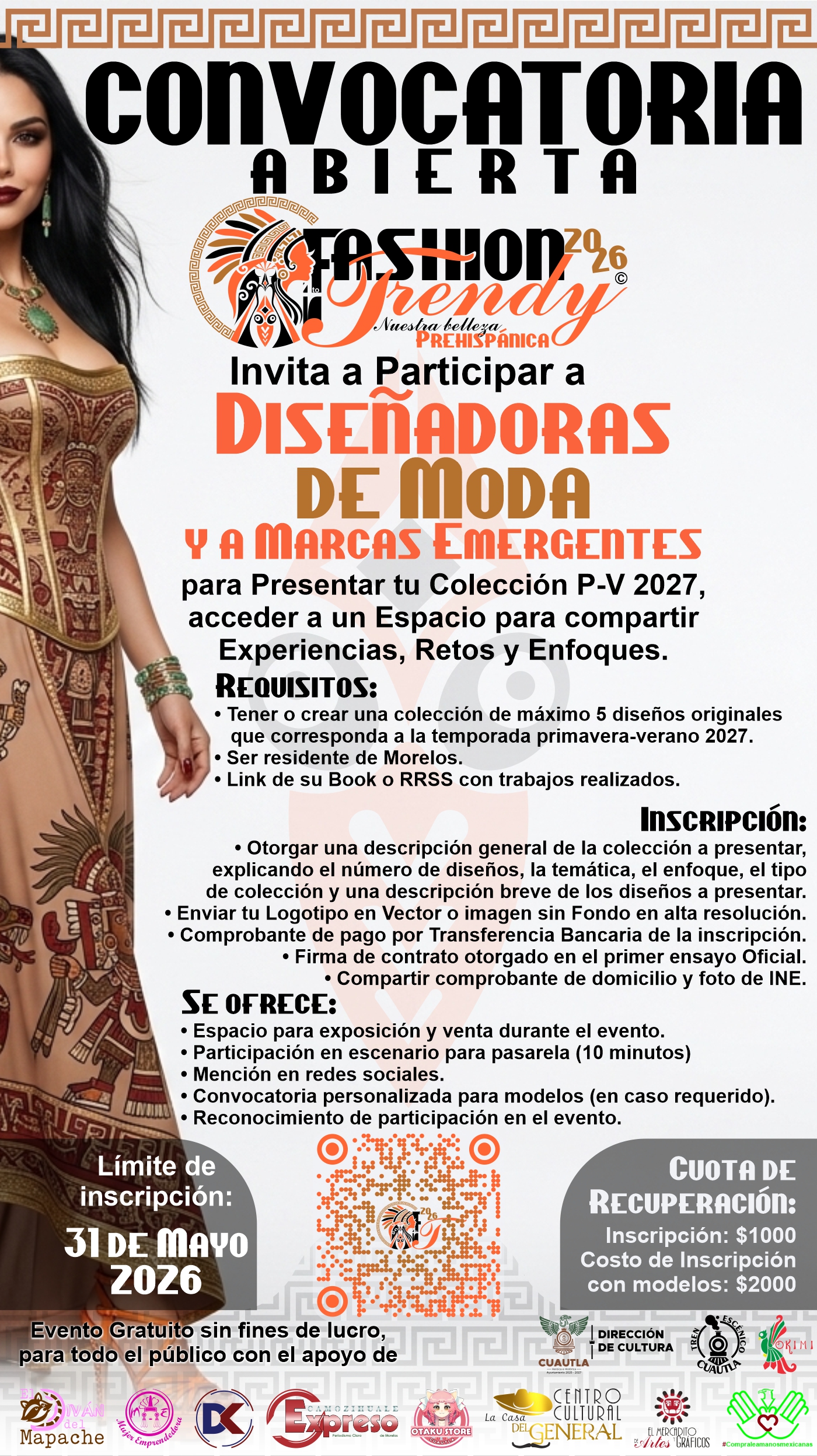 ¡Esperamos con mucho gusto y animo tu participación para este maravilloso evento que convertirá a Cuautla en la Cuidad de la Moda